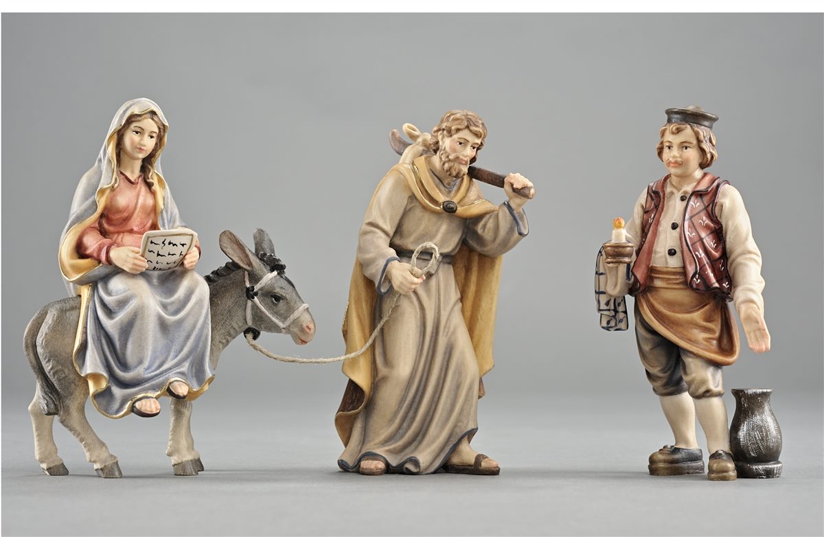 Krippenfiguren richten sich immer nach dem stehendem Josef (sollte dieser kniend dargestellt sein, dann nach dem größten Hirt oder König) in Ihrer Krippe. Messen Sie einfach den Josef von Kopf bis Fuss, hieraus ergibt sich Ihre Krippengröße. Bitte alle anderen Krippenfiguren und Tiere immer in der gleichen Größe bestellen. Sie sind proportional passend zu den anderen Figuren Ihrer Krippenserie geschnitzt.