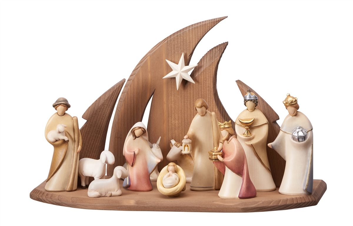 Krippenfiguren richten sich immer nach dem stehendem Josef (sollte dieser kniend dargestellt sein, dann nach dem größten Hirt oder König) in Ihrer Krippe. Messen Sie einfach den Josef von Kopf bis Fuss, hieraus ergibt sich Ihre Krippengröße. Bitte alle anderen Krippenfiguren und Tiere immer in der gleichen Größe bestellen. Sie sind proportional passend zu den anderen Figuren Ihrer Krippenserie geschnitzt.